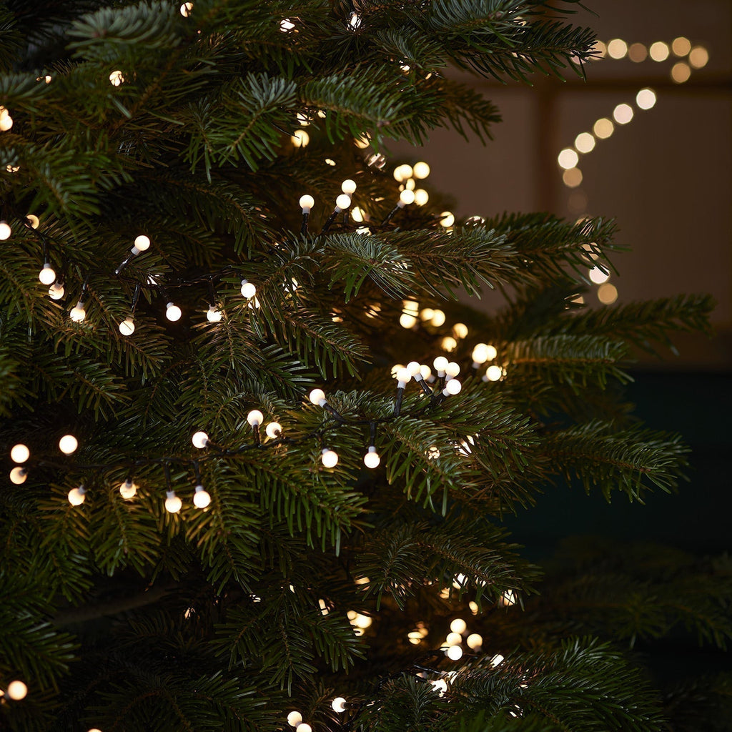 Torne esta temporada alegre e brilhante com nossas luzes compactas em formato de bagas. Com 500 LEDs branco quente distribuídos ao longo de 11 metros de cabo preto, estas luzes aconchegantes para árvore de Natal foram projetadas para ter o comprimento perfeito para uma árvore de Natal de 1,83 metros. Cada LED é envolto por uma capa branca fosca em formato de baga e estão espaçados de forma a dar à sua árvore um efeito cheio e cintilante, preenchendo seu espaço com um brilho reconfortante todas as noites. Para iluminar sua árvore, simplesmente conecte suas luzes e comece a decorar pelo topo da árvore de Natal, descendo até a base, entrelaçando as luzes entre os galhos, garantindo um brilho festivo aconchegante noite após noite.