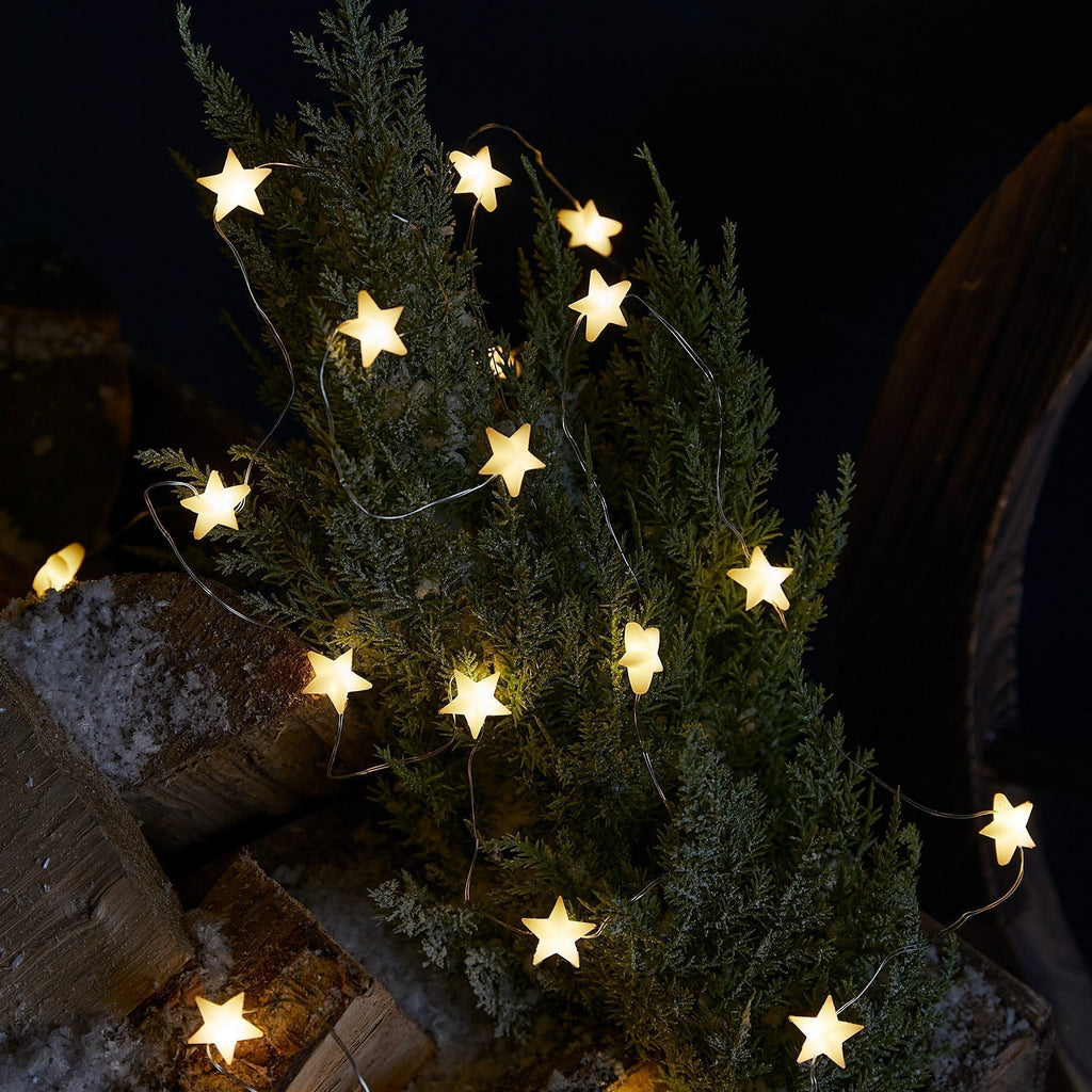 Adicione um toque festivo cintilante ao seu espaço! Nossas luzes micro em forma de estrela são o toque final perfeito para sua casa e jardim nesta temporada. Com um plástico super macio e um cabo extremamente flexível, elas podem ser facilmente envolvidas em folhagens ou moldadas dentro de um vaso para criar um destaque aconchegante natalino. Distribuídas uniformemente ao longo de 4,9 metros de fio prateado, cada estrela tem 2 cm e é iluminada por um LED em tom branco quente. Simplesmente insira 3 pilhas AA no compartimento de baterias, ajuste o timer de 6 horas e aguarde um brilho no mesmo horário todas as noites.