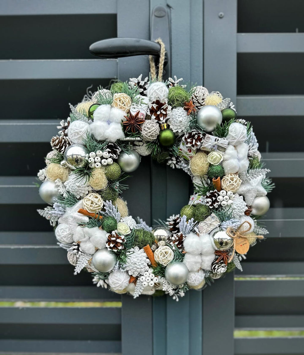 Decore sua entrada com a nossa deslumbrante Guirlanda Natalina! Feita com uma mistura exuberante de folhagens verdes frescas, esta guirlanda é adornada com brilhos sutis, pinhas rústicas e laços vermelhos vibrantes. As luzes LED delicadamente entrelaçadas criam um efeito mágico, iluminando a sua porta com um calor acolhedor. Com um toque de moda e tradição, esta guirlanda é perfeita para dar as boas-vindas aos seus convidados e trazer o espírito natalino para o se