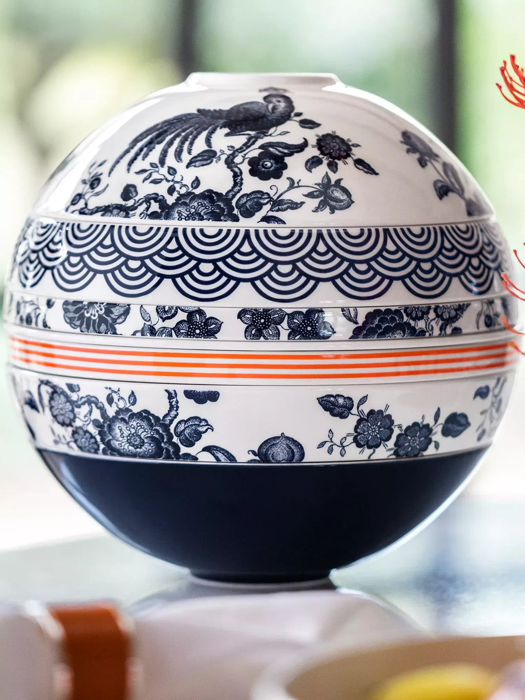Cada peça é feita em porcelana premium, com acabamento refinado e estampas inspiradas em flores e elementos tradicionais. O padrão em azul profundo contrasta com o branco da porcelana, trazendo um charme atemporal para sua mesa.